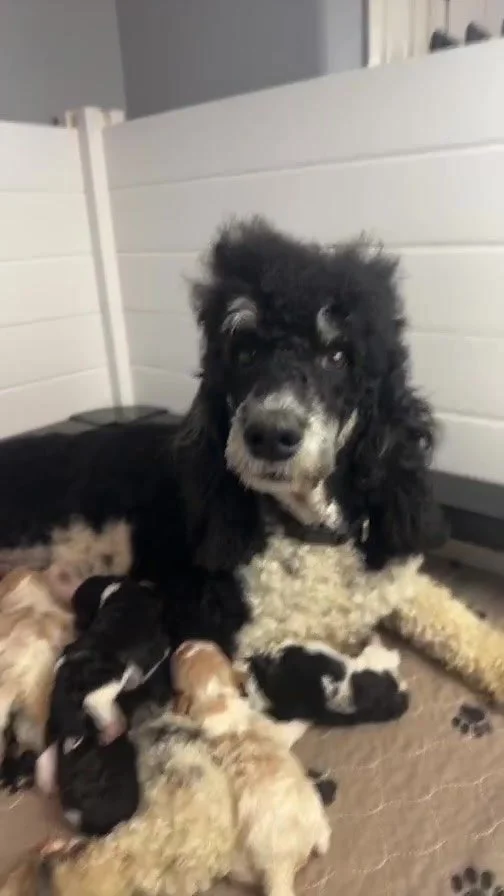 *✨*BETSY*✨* ACK Moyen Poodle, Female Traditional phantom (Tri- kyky atat) Parti (spsp) From Cece & Jasper | Estimated 20-25 lbs. Born July 3rd, 2024 | Ready September 3, 2024 *AVAILABLE*